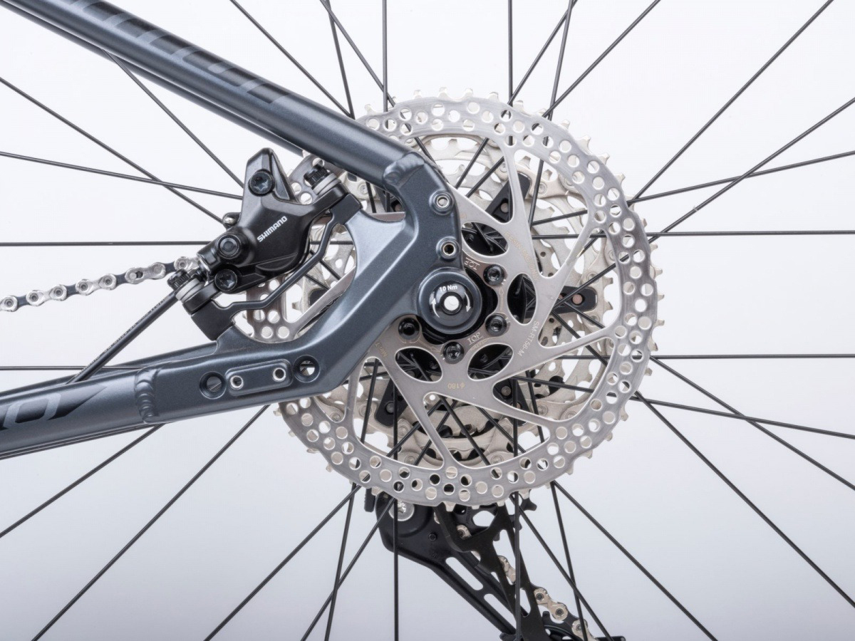 Na rámovém základu s dvojitě zeslabovanou stěnou trubek z hliníkové slitiny řady 6061 si tvůrci dali opravdu záležet, takže moderní geometrie s delším předním trojúhelníkem (horní trubka 644 mm v 19“ velikosti a 460 mm reach) a kratší 440mm zadní stavbou sází na rozumně položený 66° hlavový úhel a skoro tradiční 74° sedlovou trubku. Profilace hliníkových trubek je vpředu typicky authorovská, tedy masivní ostrá pagoda spodní trubky hned za hlavou a široké oválné zploštění směrem ke středovému pouzdru. To je samozřejmě závitové a zadní stavba napojená na středové pouzdro masivním dílcem sází na patky pro pevnou osu boostové rozteče. Díky výraznému slopingu nechybí masivní výztuha napojení sedlové na horní trubku a vnitřní vedení kabeláže prakticky vystupuje ze spodní trubky ven před středovým pouzdrem. Vidlice v boostovém provedení nabídne 120 mm vzduchového zdvihu s odskokem seřiditelným z vnějšku a lockoutem na korunce, teleskopická sedlovka pak má zdvih 125 nebo 150 milimetrů. Vlastní náboje Author doplňují široké ráfky se shodným logem a rychlejší terénní obutí Maxxis Rekon v šíři 2,4 palce s kevlarovou patkou. Komplet pohonu spoléhá na jedenáctkovou sadu Deore s kazetou 11-51 zubů a převodníkem se 32 zuby na klikách délky 170 či 175 mm, v závislosti na velikosti rámu. Tady z praktického pohledu není co vytknout, stejně jako 180mm kotoučům a brzdám Shimano MT410, kde je chvályhodné, že výrobce nevsadil na základní dvoustovky.