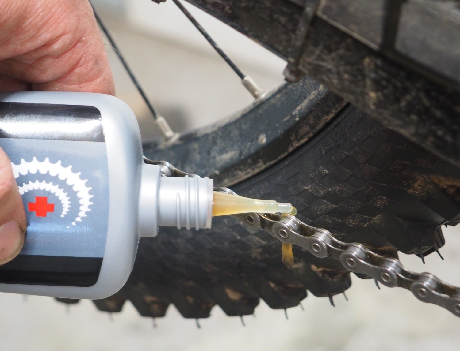 Mazivo řidší konzistence doporučuje výrobce před aplikací důkladně protřepat a nanést na čistý řetěz delší dobu před vyjížďkou, ideálně tři až pět hodin, aby mělo šanci na řetězu důkladně zaschnout. Mazivo je řidší, takže aplikace je lepší s hadříkem nebo ubrouskem přidrženým pod řetězem. Olej se na řetěz totiž nanáší velmi snadno, ale když trochu přitlačíte, větší množství se na článku neudrží a část proteče na zem. Nevýhoda pro ty kdo mažou doma v bytě, výhoda naopak pro velice rychlé proniknutí maziva do článků řetězu. Proti hustým a lepivým mazivům, která se drží na povrchu článků a pronikají postupně, je tohle uvnitř článků násobně rychleji. Není nutné aplikovat tak velké množství, dovnitř článků zateče maziva dostatek. Stačí pak nechat jej delší dobu zavadnout a zaschnout, případně pokud není čas, tak po chvilce setřít přebytky hadříkem.