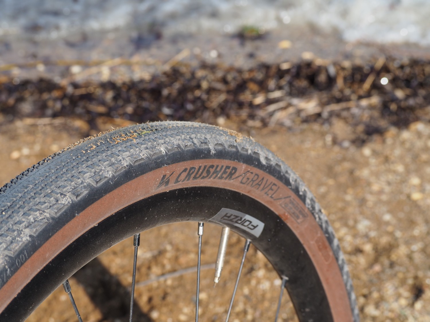 Crusher se vyrábí jak v celočerné verzi, tak námi testovaném provedení s hnědým bokem a s kostrou 60 nebo 120 TPI, obojí pak v rozměru 40 nebo 45x622. Zvolil jsem hnědý bok a šířku 45, která na ráfky kol Forza Norte s vnější šířkou 29 mm skvěle pasuje. Naměřená šíře obutých plášťů je v maximu 46 milimetrů a výška od hrany ráfku pak 41 milimetr. Nejsou to zbytečně velké balóny a výstupky na bocích dezénu plášť lehce přesahují, nemá boky širší než dezén. Výrobce uvádí hmotnost 540 gramů, já jsem navážil 523 gramy, takže chválím a jen dodám cenu 1190 korun, která je shodná pro všechny 120 TPI varianty, zatímco 60 TPI jsou za 890 korun. Montáž je snadná, stačila jedna montpáka a ještě bez nějaké větší síly. Tenké boky nehrají na nějakou honbu za neprůstřelností, ale „papíráky“ to rovněž nejsou, což nakonec ukázala odolnost vůči defektu. Tady nebyl jediný problém, a to jsem použil TPU duše a posléze klasické duše, byť pláště jsou samozřejmě v bezdušovém provedení a měly by si rozumět se všemi tmely. Nulová házivost na ráfku, přesné usazení i se zmíněnou duší a chvilka hledání optimálního tlaku, kdy doporučené maximum je 3,5 BAR, tedy 50 PSI. Dezén je totiž univerzální pro široké spektrum povrchů a Crusher patří mezi takzvané „all-roundery“, tedy jeden plášť pro všechno.
