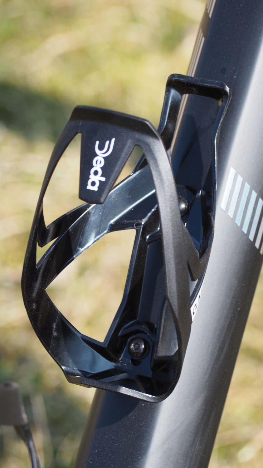 Italská elegance, cit pro detail a současně vysoká funkčnost a nízká hmotnost. Tohle všechno lze ukrýt v tak jednoduchém doplňku, jakým je košík na bidon. Gabbia je košík z techno polymeru s vysokou odolností a přestože váží jen 30 gramů, nabídne poměrně houževnaté provedení a současně optimální míru pružnosti. Hlubší základna dokonale překrývá oba šroubky, nechybí širší spodní opěrná plocha pro dno bidonu a poměrně široká boční ramena s naprosto přesným zakřivením, takže bidon dokonale kopírují. Nižší horní zobáček a současně naváděcí „límec“ na horním spoji bočních ramen perfektně navedou bidon do košíku a ten tam sedne s doslova strojní přesností. Zkoušeli jsme hned pětici bidonů různých značek a každý sedí v košíku naprosto bez vůle, bez stranové deformace a v podstatě bez hnutí. Košík a bidon tak tvoří jeden pevný celek, který se nepatrně pohybuje jen na rozbitém povrchu v rámci pružnosti materiálu. Zkoušeli jsme s košíkem „kroutit“ do stran větší silou a prostě drží, takže obavy z poškození materiálu jsou zbytečné.
