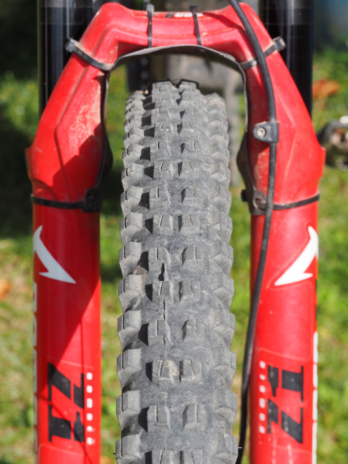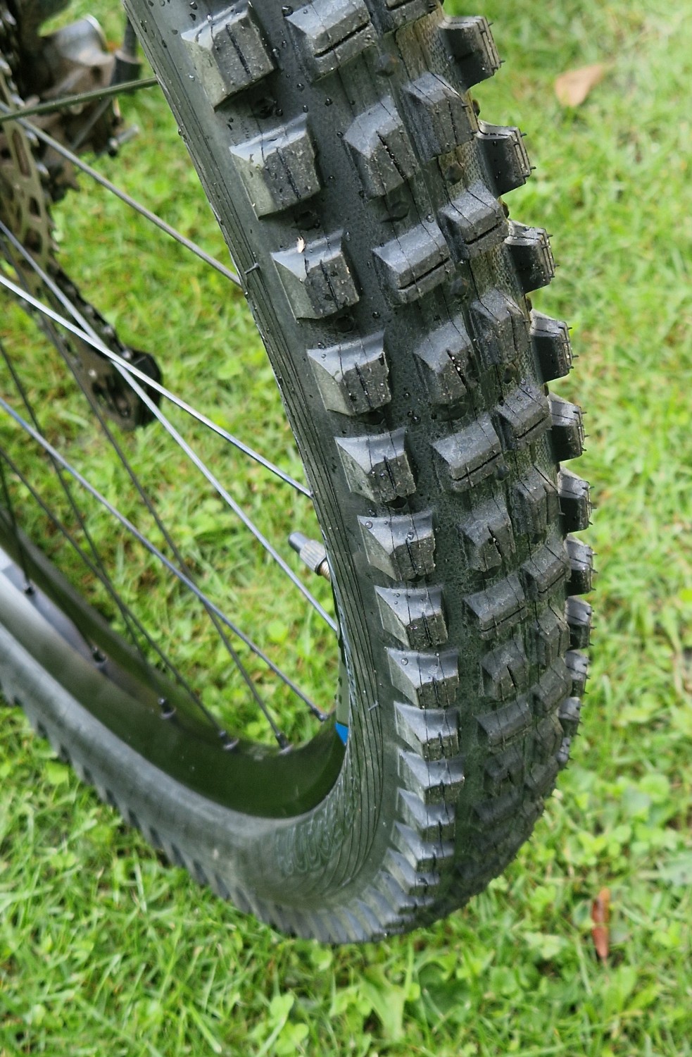 Zadní Judge je na tom konstrukčně sice stejně, navíc je užší o jednu desetinu palce, ale navážili jsme mu poctivých 1658 gramů. Pro montáž na ráfek platí totéž co pro Verdict, ale průřez je výrazně plošší, takže se boční profily dostanou ke slovu i v menším náklonu a jistota, s jakou umí tenhle plášť držet v extrémních zatáčkách je proti přednímu sourozenci o poznání vyšší. Středový vzorek střídá dva druhy profilů, jedny pro brzdění a druhé boční stabilitu, boky mají rovněž dva a jistota v zatáčkách bude nejspíš jejich zásluha. Sypký povrch, kameny i mokré kořeny, tam všude plášť exceluje, v hrabance nadchne a tvrdý podklad v bikeparku mu také dokonale sedne. Vyjma nejhoršího bláta, kde ale rovněž solidně umí a jen agresivnější kousky jej přebijí, je to rovněž vynikající univerzál. Odolnost směsi je díky měkčímu provedení co do životnosti slabší než vpředu, ale to lze logicky očekávat. Odvalování pak s ohledem na hmotnost není silnou stránkou, na druhou stranu ale výška vzorku a směs nejsou příčinou nějaké lenosti.
