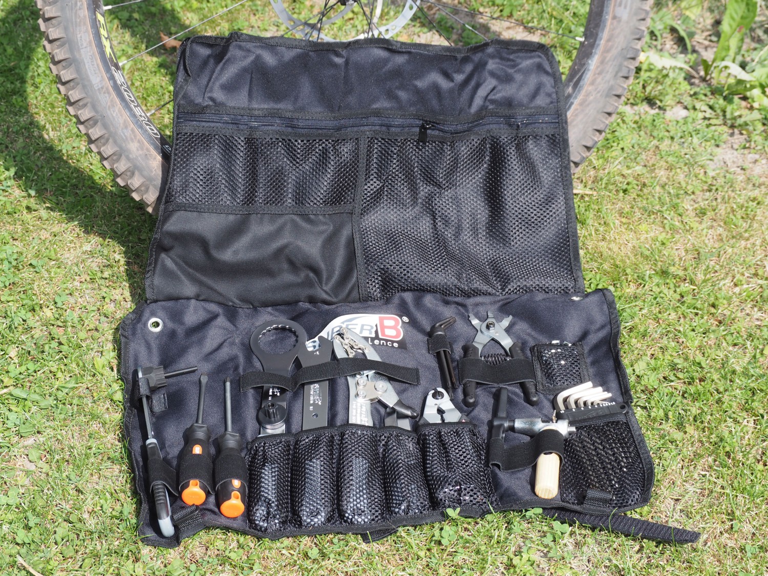 Sadu cyklistického nářadí v plastovém kufříku zná asi každý a koho jen trochu zajímá servis v závodních depech, obdivuje velké kufříky se zavěšenými panely se speciálním nářadím. SuperB kromě celé řady sad nářadí v kufřících nabízí i dvě sady v zavinovacím textilním obalu, který lze zavěsit třeba na stolek díky dvojici poutek, nebo nacpat díky menším rozměrům do batohu, pokud je třeba dojít se servis-pointem někam dál na trať závodu.