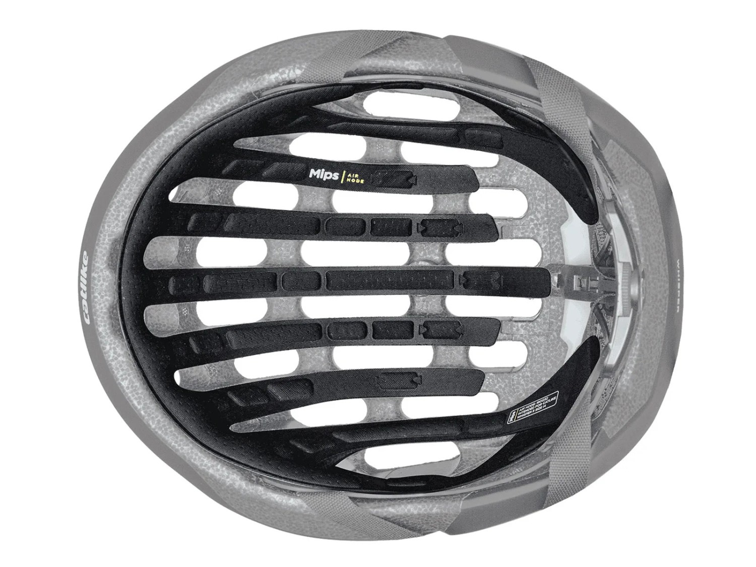 Do testu se nám dostala silniční či gravel novinka Whisper II Mips, aktuálně dodávaná zatím jen ve velikosti M (54-59 cm) a trojici barevných provedení. Whisper byl u Catlike po léta ikonický model a jeho nástupce se na to snaží navázat, ovšem chce ukázat nový směr vývoje značky, ale snaží se držet všech benefitů, které ji provázely v minulosti. Zásadní je maximální ventilace, kterou u in-mold konstrukce zajišťuje hned 32, respektive 34 otvorů, přičemž na čelní straně přilby je otevřených až 40 % z její celkové plochy. Pro maximální bezpečnost je uvnitř tvrzeného jádra polymerová výztuha LCP Cage, která by měla v případě nárazu zvýšit pevnost i soudržnost celku. Dalším bezpečnostním prvkem je systém MIPS® Air Node, tedy ochrana proti rotačním silám při nárazu. Tady nejde o klasickou plastovou vnitřní Mips vložku, ale o jednodílné provedení členité výstelky s gelovými polštářky, které zajistí částečnou eliminaci rotačních sil. Díky tomuto provedení přilba i lépe ventiluje, než kdyby v ní byla klasická plastová Mips vložka. Pojďme ale víc do detailu.