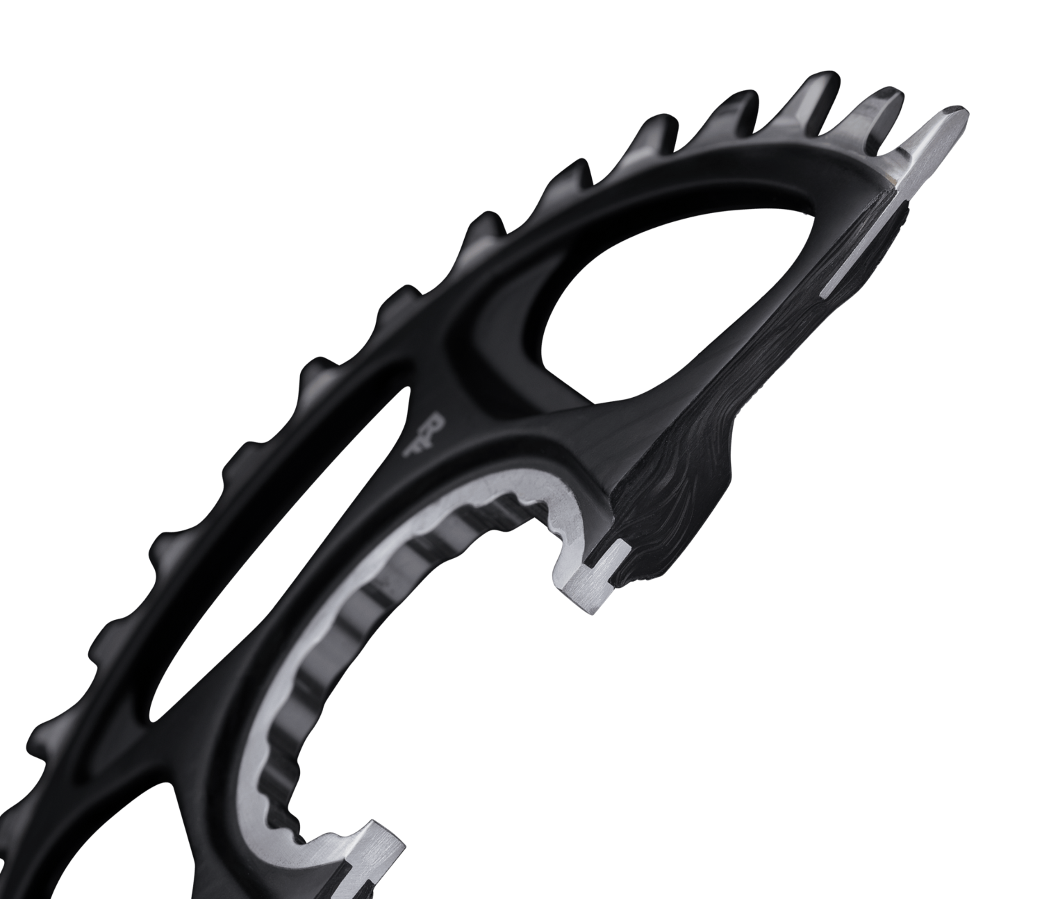 Základním požadavkem byla nízká hmotnost a současně dlouhá životnost převodníku, takže jak tohle skloubit, aby ani jeden parametr neutrpěl. Tři materiály dohromady to umí zajistit, takže základem je hliníkový unašeč ze slitiny 7075, samozřejmě vlastního standardu CINCH, tedy odpovídající růžice pro uchycení na klikách. Ten je zakomponován do karbonového těla převodníku, které má na starosti snížení hmotnosti při zachování maximální tuhosti. Na vnějším obvodu je do karbonu zase implantovaný ocelový převodník a technologie spojení trojice materiálů je stejná jako v případě karbonových klik ERA, takže se všechny díly pod tlakem spojí a karbon vytvrdne, tedy velmi zjednodušeně řečeno. Vnější ozubení je z oceli, což by mělo zaručit větší pevnost a tvrdost než třeba titan a současně až pětinásobnou odolnost vůči opotřebení proti hliníkovým převodníkům. Technologie úzkého a širokého zubu je samozřejmostí. Spojení oceli i hliníku přes karbonový základ by mělo odolat krouticímu momentu srovnatelnému s 5,9 litrovým dieselovým motorem Cummins, takže i hodně výkonný jezdec by neměl mít problém. Výhodou je pak kromě celkově až pětinásobné životnosti proti hliníkovým převodníkům samozřejmě hmotnost, která je s nimi srovnatelná a pak cena, která je v podstatě dvojnásobná. Převodník bez kompromisů, tak svůj počin Race Face označují. Převodník by měl být kompatibilní s pohony s deseti až dvanácti pastorky, jim adekvátními řetězy, ovšem v případě Shimano dvanáctky pouze HG+ řetězy. Řetězová linka bude s klikami Race Face se 136mm osou 52 nebo 55 mm a hmotnost verze 32 zubů je 83 gramů (dostupné 30, 32 a 34 zubů). Cena by se měla pohybovat na částce 4450 korun, takže teď mají majitelé klik Race Face možnost volby tří variant. Buď koupit tenhle luxus, nebo výrazně pod dva tisíce korun pořídit hliníkovou variantu, klidně i v barevném eloxu a nebo zavřít oči nad hmotností a za šest stovek koupit základní ocelový převodník. Co byste volili vy?