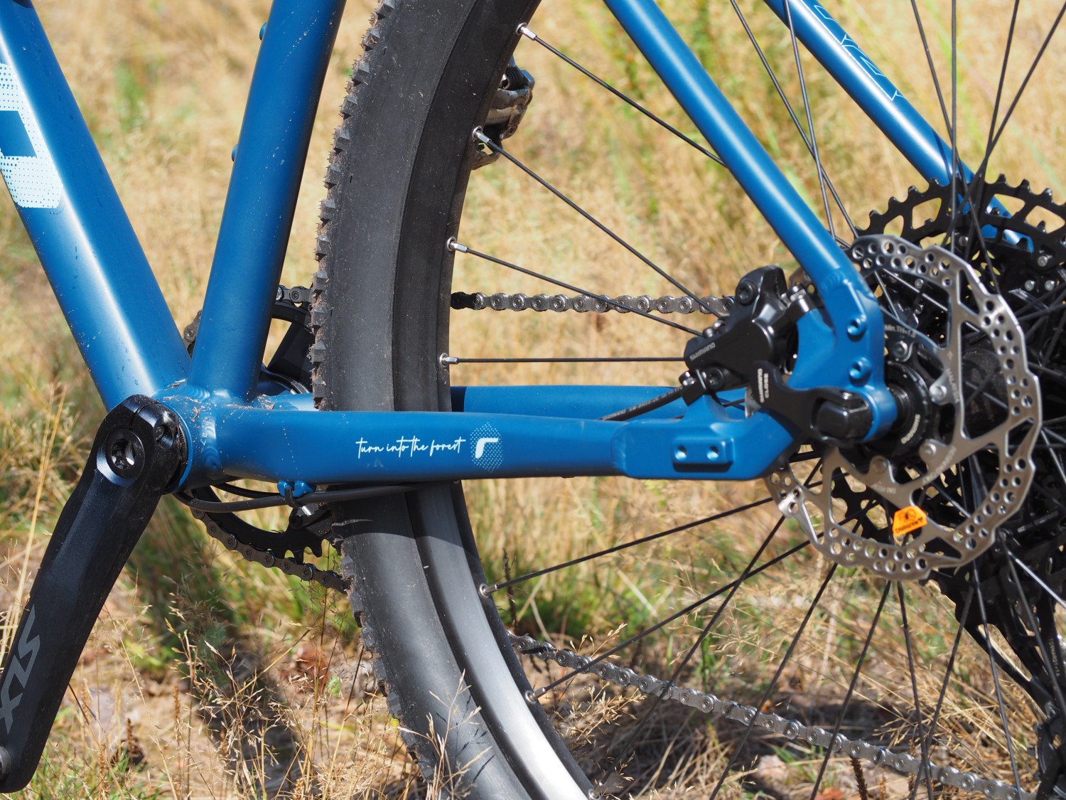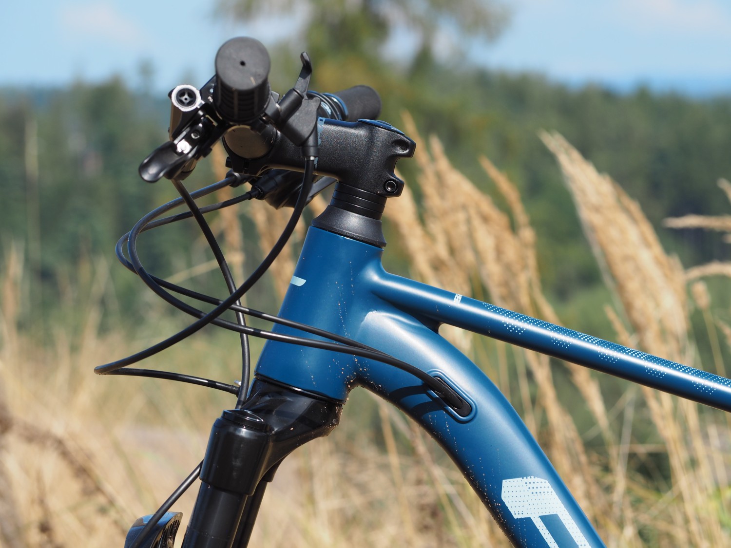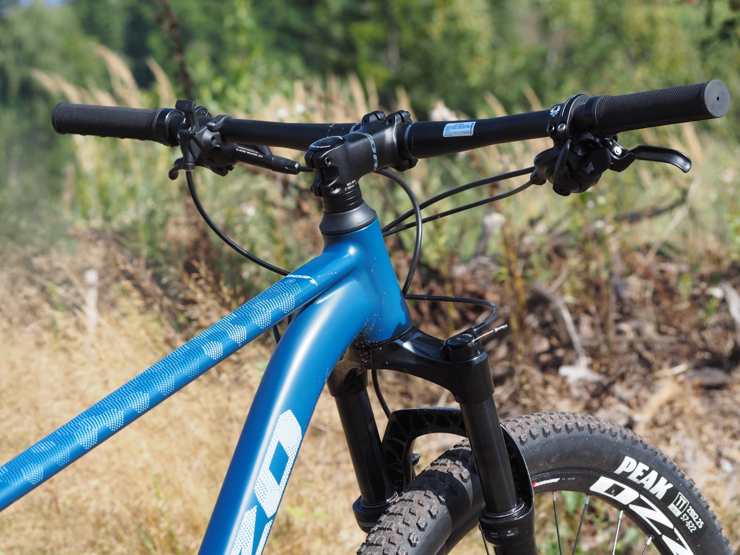 Odpružení dostal na starosti vstupní model z kolekce RockShox, tedy Judy se 30mm průměrem ocelových vnitřních nohou, ale s dálkově ovládaným lockoutem na řídítkách. Ta jsou širší s příjemným zahnutím a ideálně vysoko posazená, aby nabídla pohodlí, ale současně možnost snížit jejich pozici pro sportovnější posed. Pohodlí nabídne i sedlo s vlastním logem, to bylo i na delší trase docela komfortní. Silnější sedlovka sice nezaručí takovou míru tlumení jako štíhlejší 27,2mm kousky, ale i tak nepůsobila zadní stavba tvrdým dojmem a to se Boost se šířkou plášťů nijak nehrne k současným objemnějším balónům. Kola ve středně širokých ráfcích jsou obutá do plášťů s legendární okřídlenou teniskou a přestože jde o šíři 2,25 palce, působí díky rychlejšímu vzorku bez větších bočních profilů spíše štíhlejším dojmem. Co je ale zajímavé, je kombinace brzd, nábojů a klik Shimano, zatímco kazeta, přehazovačka i řadicí páčka jsou z produkce konkurenčního Sramu. Funguje to celé ale spolehlivě, takže v tomhle mixu není třeba hledat nějaké zádrhely, ostatně i kolo jako takové nabídne docela příjemný projev.